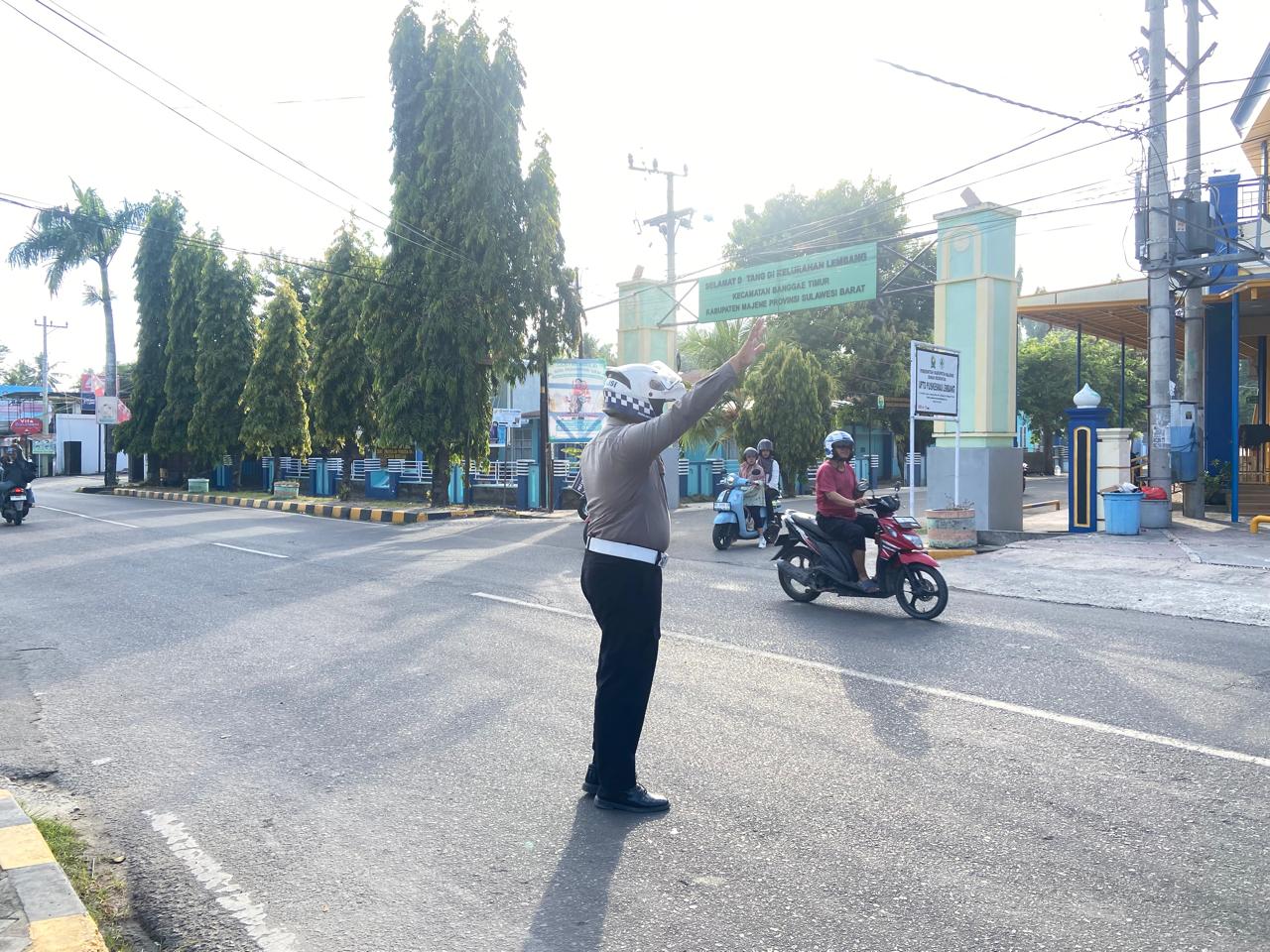 Personel Sat Lantas Polres Majene diterjunkan langsung ke lapangan untuk memberikan pelayanan dan pengaturan arus lalu lintas. Mereka membantu penyeberangan jalan bagi pejalan kaki, mengatur kendaraan di persimpangan padat, serta memastikan kelancaran dan keamanan pengguna jalan agar aktivitas masyarakat berjalan dengan tertib.