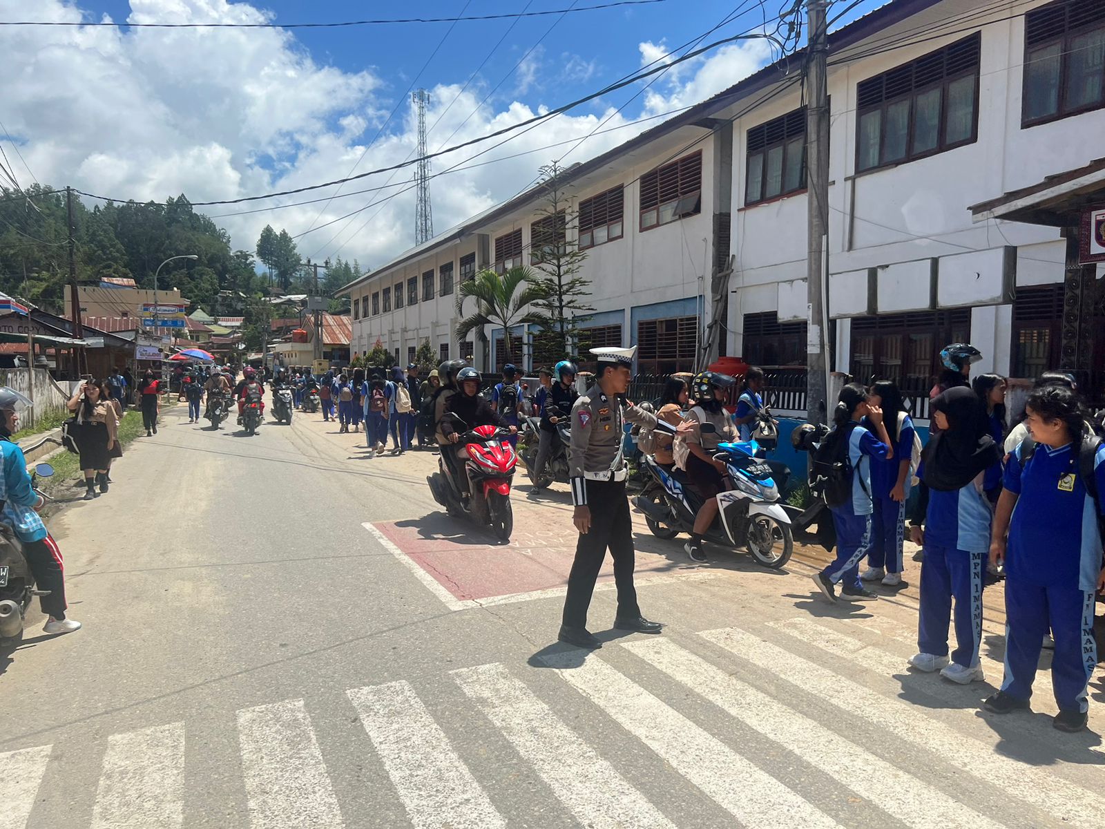Sejak pukul 12.00 WITA, anggota Satlantas berada di lokasi untuk mengatur lalu lintas dan memberikan himbauan kepada masyarakat sekitar. Mereka melakukan berbagai upaya untuk mengurai kemacetan, mencegah kecelakaan, serta meminimalisir pelanggaran lalu lintas. Hasilnya, arus lalu lintas di sekitar SMP Negeri 1 Mamasa berjalan lancar, dan pelayanan kepada masyarakat pun terasa optimal.
