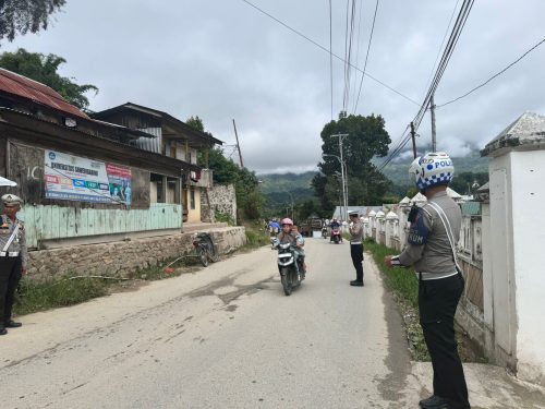 MAMASA–Satuan Lalu Lintas Polres Mamasa melaksanakan patroli jalan kaki sebagai bagian dari upaya menjaga ketertiban dan keamanan lalu lintas di wilayah Kabupaten Mamasa, 5 Desember 2024