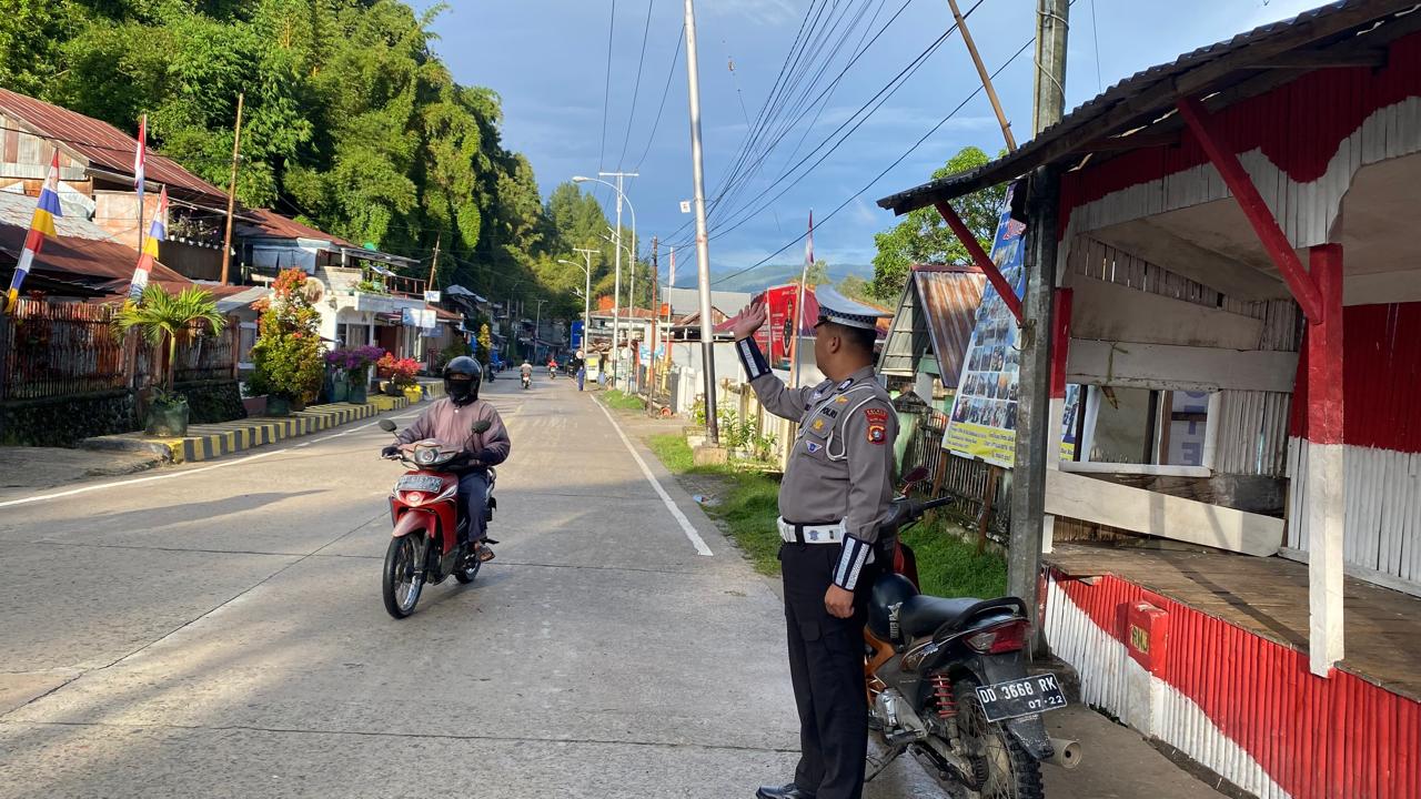 POLRES MAMASA–Satuan Lalu Lintas (Sat Lantas) Polres Mamasa melaksanakan kegiatan Pergelaran Ambang Gangguan Pagi pada Kamis (11/9) mulai pukul 07.00 WITA. Kegiatan tersebut digelar di sejumlah titik rawan kemacetan di Kota Mamasa, antara lain Simpang Lima, Pertigaan Bank BRI, Simpang Jalan Pembangunan, Pertigaan ATM Gabungan Dinas, Traffic Light, Simpang Demmatande, dan Simpang Ahmad Yani, 10 September 2025