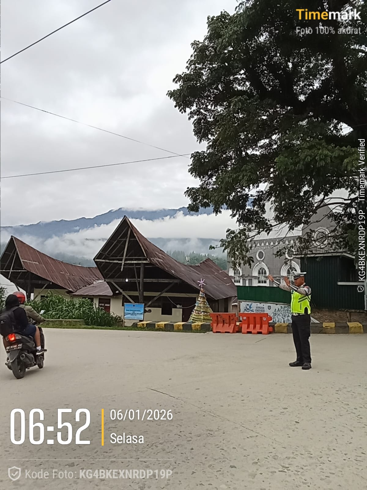POLRES MAMASA–Satuan Lalu Lintas Polres Mamasa melaksanakan kegiatan Pergelaran Ambang Gangguan Pagi pada Selasa, mulai pukul 07.00 WITA hingga 07.45 WITA. Kegiatan ini dilaksanakan di sejumlah titik rawan kepadatan arus lalu lintas di wilayah Kota Mamasa, Kabupaten Mamasa, 06 Januari 2026