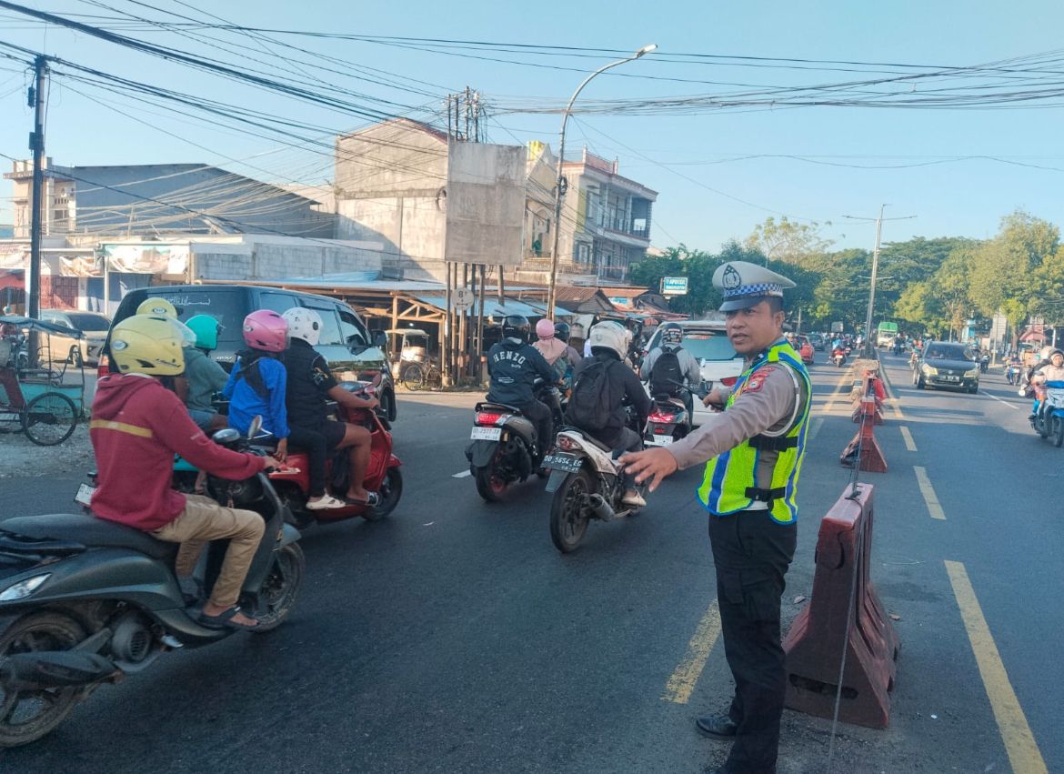 “Pengaturan pagi ini rutin kami laksanakan sebagai upaya memberikan rasa aman dan nyaman kepada masyarakat pengguna jalan, sekaligus mengurai kepadatan arus lalu lintas di jam-jam sibuk” ujarnya, Kamis (16/4/2026).