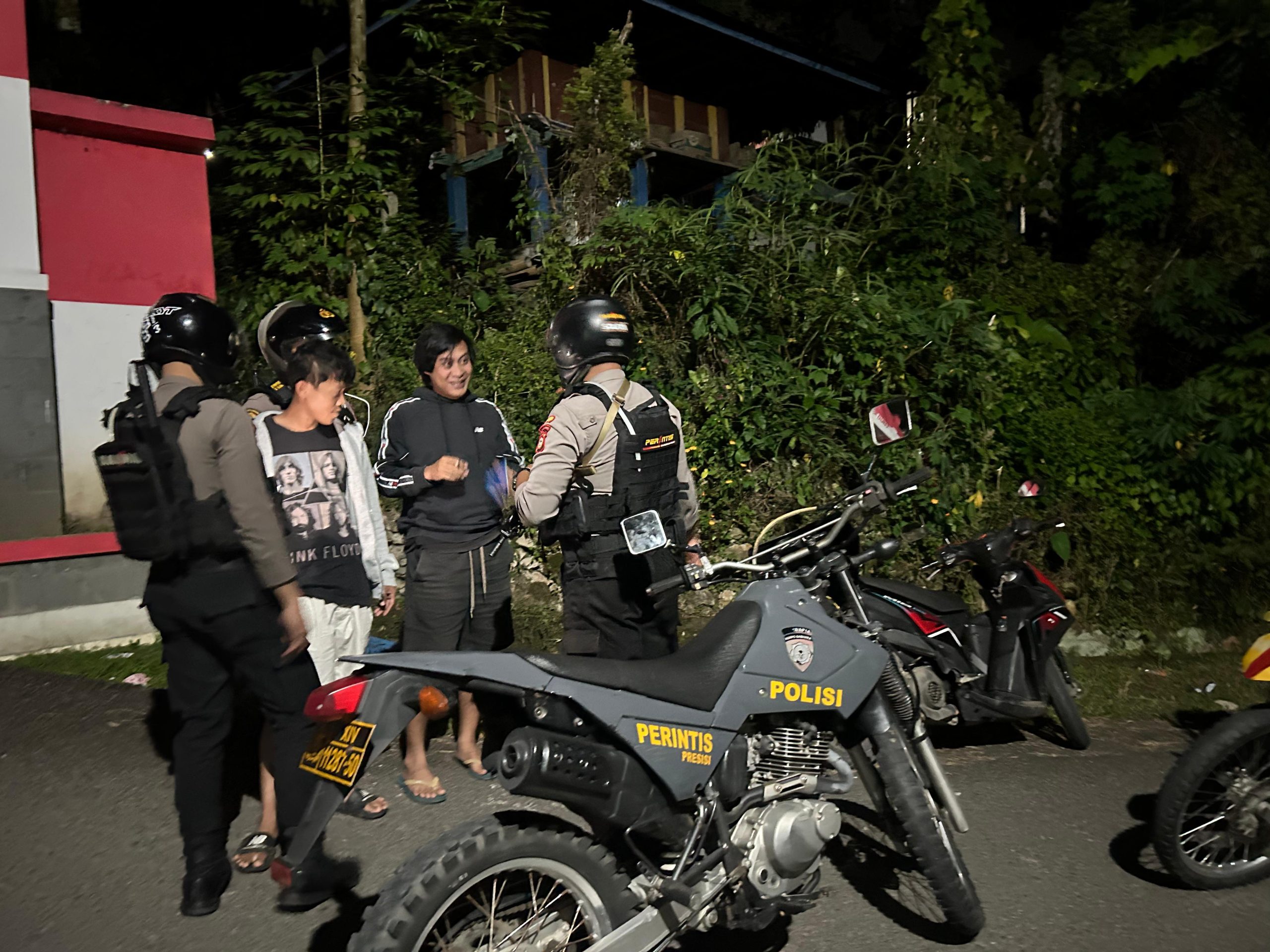 Patroli mobile digelar menyasar sejumlah lokasi yang kerap dijadikan tempat berkumpul para pemuda dan remaja hingga larut malam. Aksi personel Sat Samapta tampak aktif menyisir titik-titik rawan, menyapa langsung para remaja yang nongkrong di tepi jalan, serta memberikan imbauan secara humanis agar tidak melakukan aktivitas yang dapat mengganggu kenyamanan masyarakat.