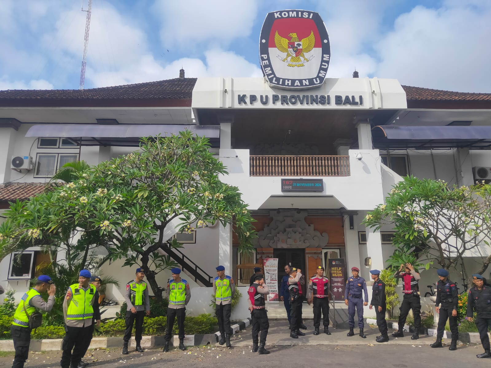 Amankan kantor Komisi Pemilihan Umum (KPU) Provinsi Bali, Renon Denpasar, senin 17/6/2024.