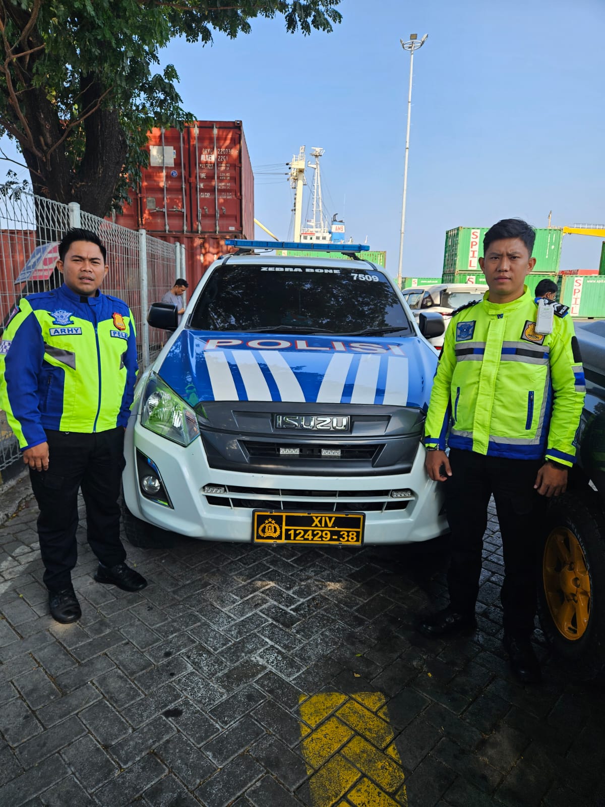Personil Satlantas Polres Bone Patwal 7509 melaksanakan kegiatan pengawalan distribusi surat suara Pilkada di Pelabuhan Soekarno Hatta (Lapangan 100) Makassar