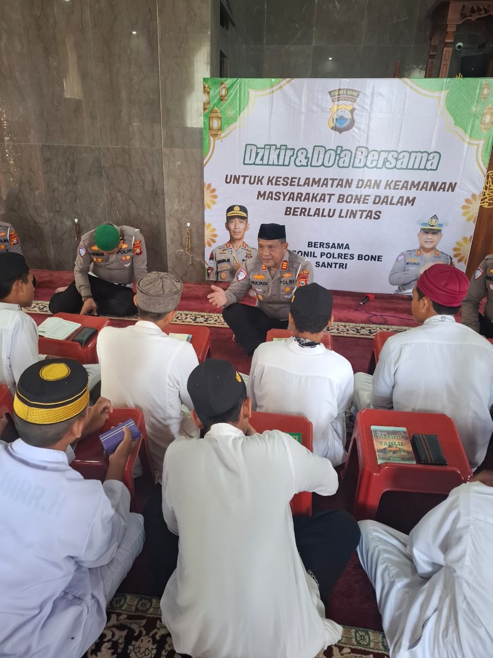 Kasat Lantas Polres Bone AKP H Musmulyadi S.PDi., mengatakan kegiatan spiritual ini untuk memohon keselamatan dan keamanan masyarakat Kabupaten Bone dalam berlalu lintas.