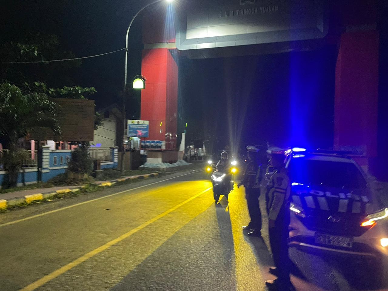 Polres Majene — Satuan Lalu Lintas (Satlantas) Polres Majene kembali menggelar Patroli Blue Light di sejumlah titik rawan sepanjang Jalan Trans Sulawesi dalam wilayah Kota Majene, Minggu malam (28/12/25) hingga dini hari. Kegiatan ini dilaksanakan guna mengantisipasi pelanggaran lalu lintas serta mencegah aksi balap liar yang kerap terjadi pada malam hari.