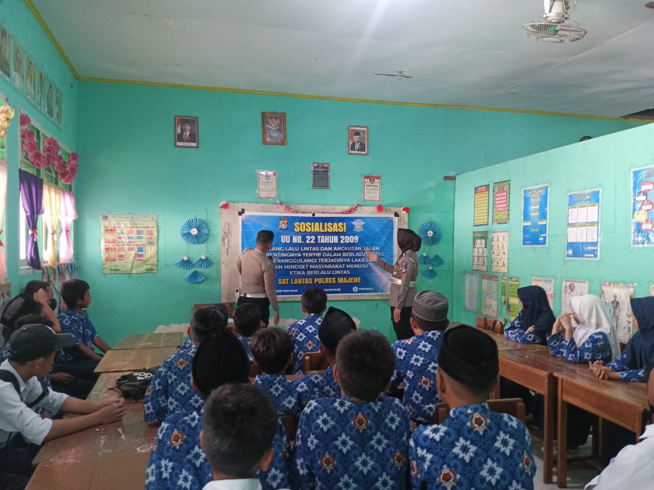 Dalam rangka Operasi Keselamatan Marano 2024, Satuan Lalu Lintas Polres Majene menggelar sosialisasi Undang-Undang Nomor 22 Tahun 2009 tentang Lalu Lintas dan Angkutan Jalan (LLAJ) di Madrasah Tsanawiyah (MTS) Guppi Majene yang terletak di Kecamatan Banggae. Kamis (7/3/2024).