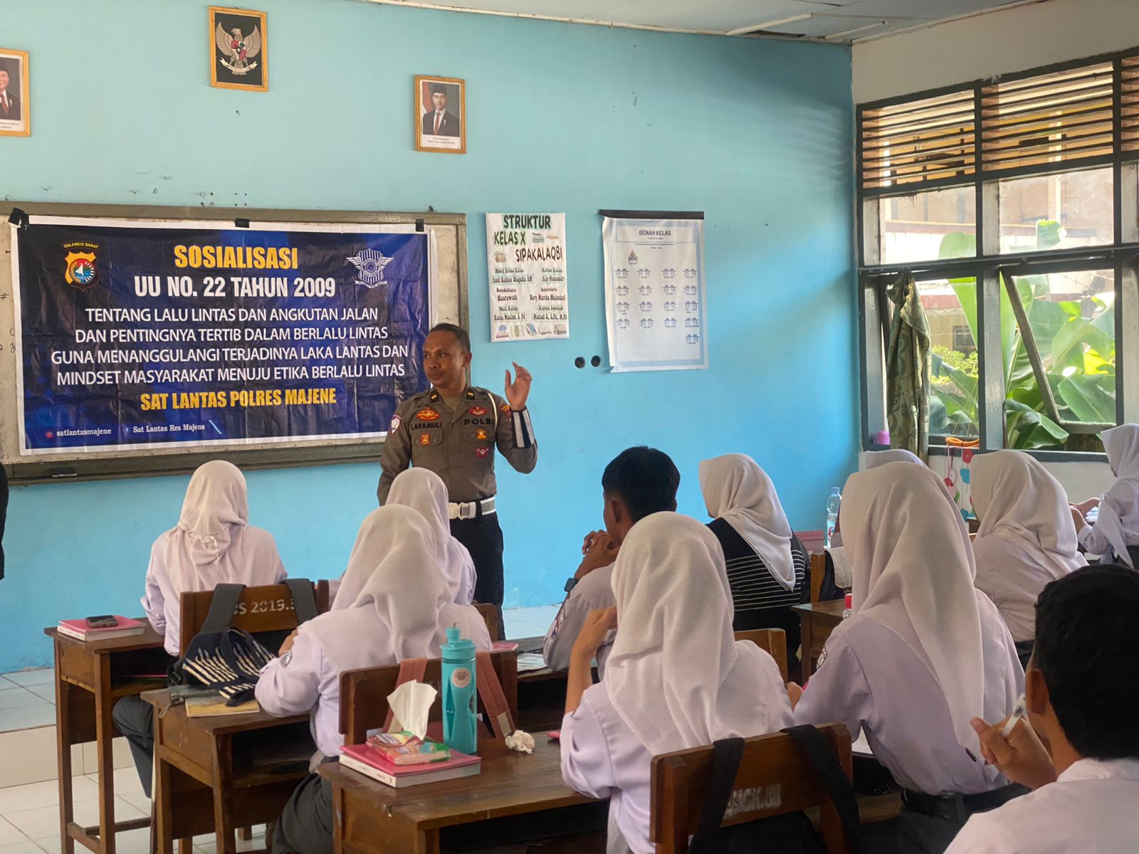 Satlantas Polres Majene Sosialisasikan UU Tentang Lalu Lintas dan Angkutan Jalan di SMA Negeri 1 Majene