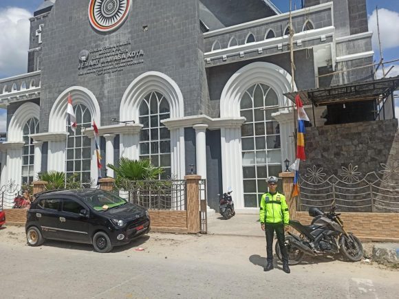 Kegiatan tersebut bertujuan untuk memberikan rasa aman kepada masyarakat yang sedang melaksanakan ibadah sekaligus memastikan bahwa arus lalu lintas di sekitar lokasi gereja tetap tertib dan lancar.