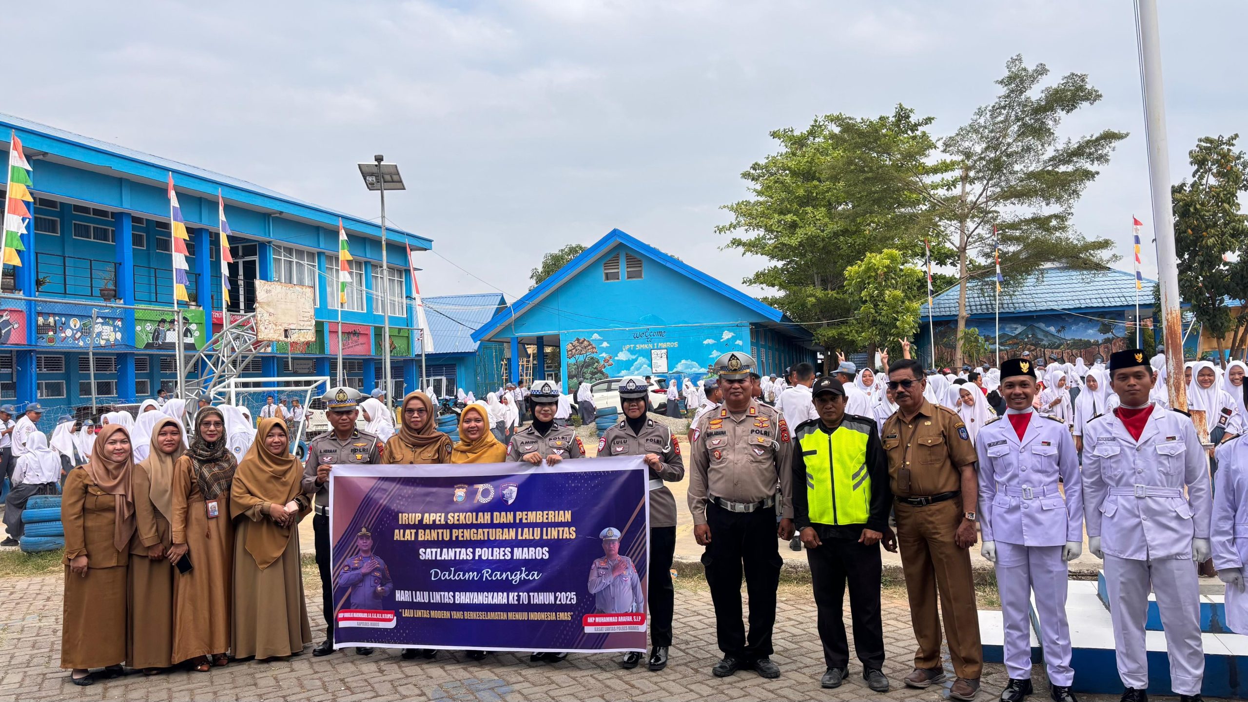 Maros – Dalam rangka memperingati Hari Ulang Tahun Lalu Lintas Bhayangkara ke-70, Satlantas Polres Maros melaksanakan kegiatan Police Go To School di SMKN 1 Maros, Senin (8/9) pagi. Kegiatan ini dipimpin langsung oleh Kasat Lantas Polres Maros, AKP Muhammad Arafah, S.I.P, bersama sejumlah personel Satlantas.