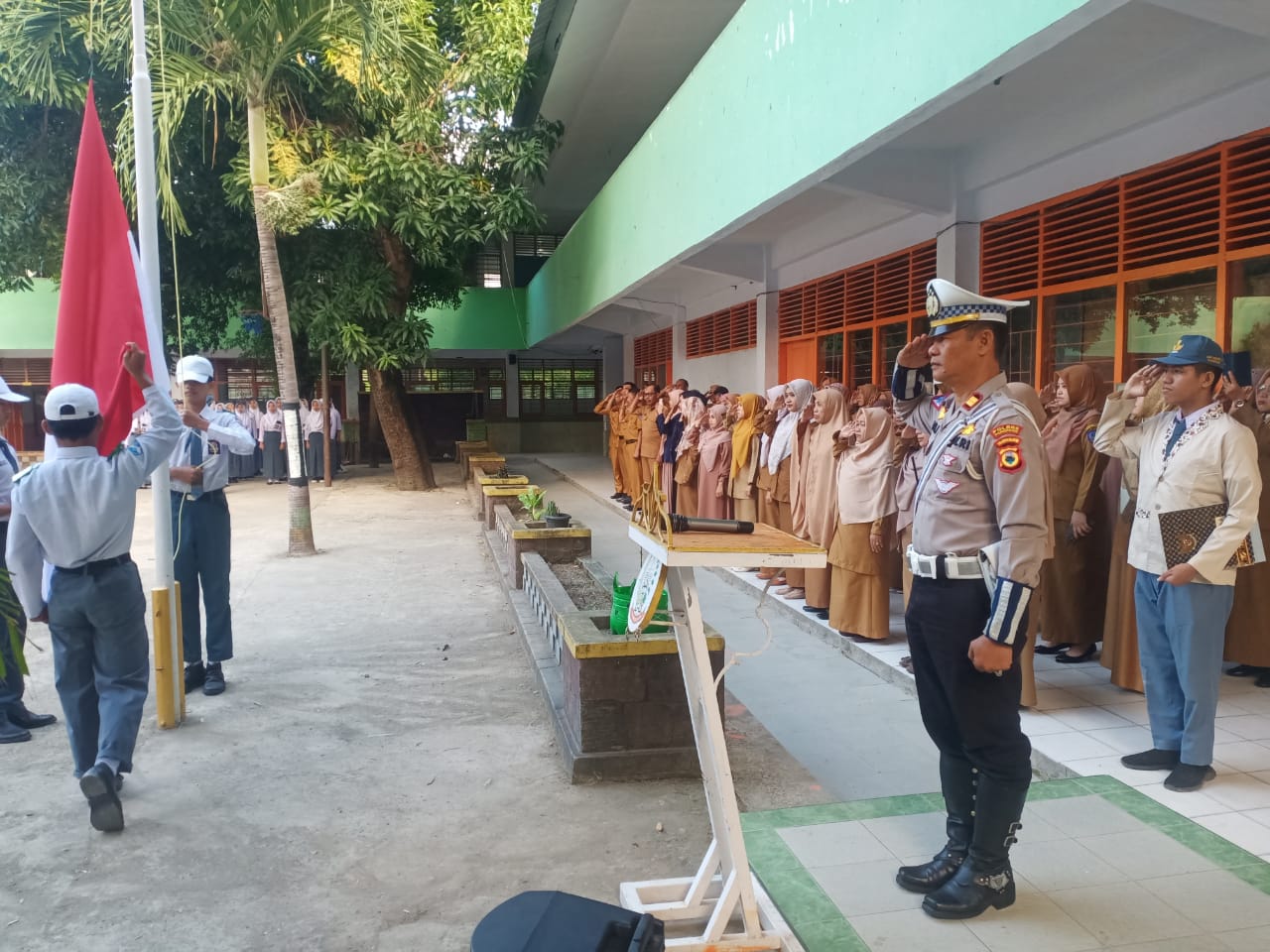 Selain itu tampak sejumlah Polisi dari satuan Lalulintas Menjadi pembina upacara pada upacara mingguan sekolah menengah atas di kota Parepare.