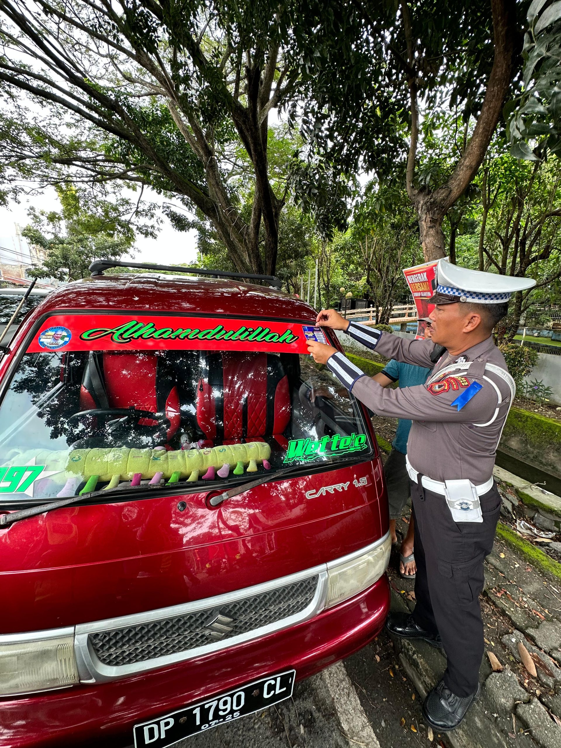 SIDRAP, 18 Juli 2024 – Satuan Lalu Lintas Polres Sidrap terus meningkatkan upaya sosialisasi dalam rangka Operasi Patuh 2024. Selain program Police Go to School, kali ini Satlantas Polres Sidrap melaksanakan pemasangan stiker dan pembagian brosur kepada para pengendara. Kegiatan ini bertujuan untuk meningkatkan kesadaran dan kedisiplinan masyarakat dalam berlalu lintas.