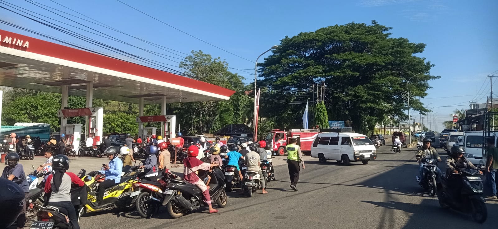 Kegiatan yang dimulai sejak pukul 07.00 WITA tersebut dilakukan sebagai respons terhadap meningkatnya antrean kendaraan di area SPBU yang kerap meluber hingga ke badan jalan dan berpotensi menimbulkan kemacetan.