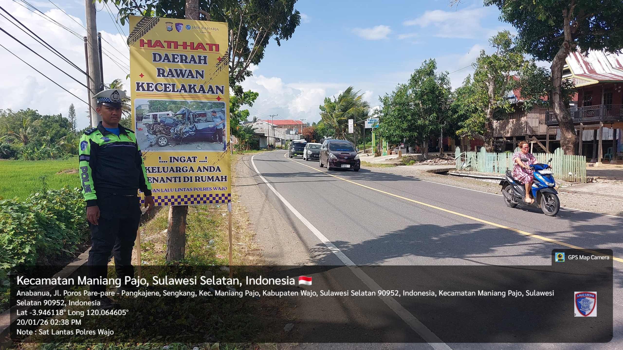 WAJO – Satuan Lalu Lintas (Satlantas) Polres Wajo terus berkomitmen menghadirkan pelayanan kepolisian yang Prediktif, Responsibilitas, dan Transparansi Berkeadilan (Presisi) melalui langkah preventif pemasangan spanduk imbauan keselamatan berlalu lintas di sejumlah titik rawan kecelakaan (blackspot), Selasa (20/1/2026).