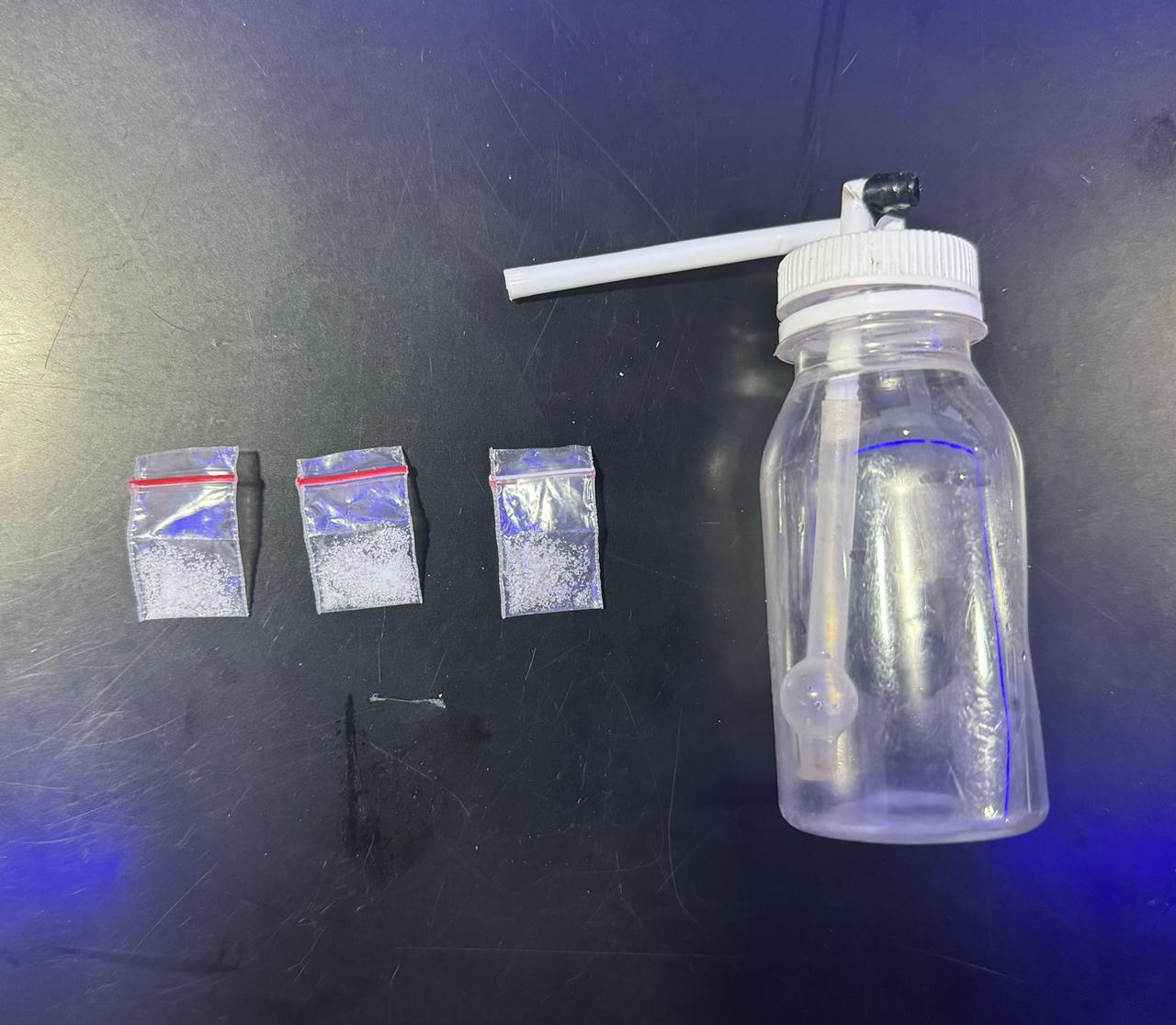 “Pada saat penggeledahan, pihak Kepolisian menemukan 3 (tiga) sachet sabu ukuran kecil yang tersimpan dalam plastik klip/bening dan 1 (satu) unit alat isap sabu/bong didepan ketiga tersangka tepatnya diatas lantai, ” Ujar Kasat Narkoba
