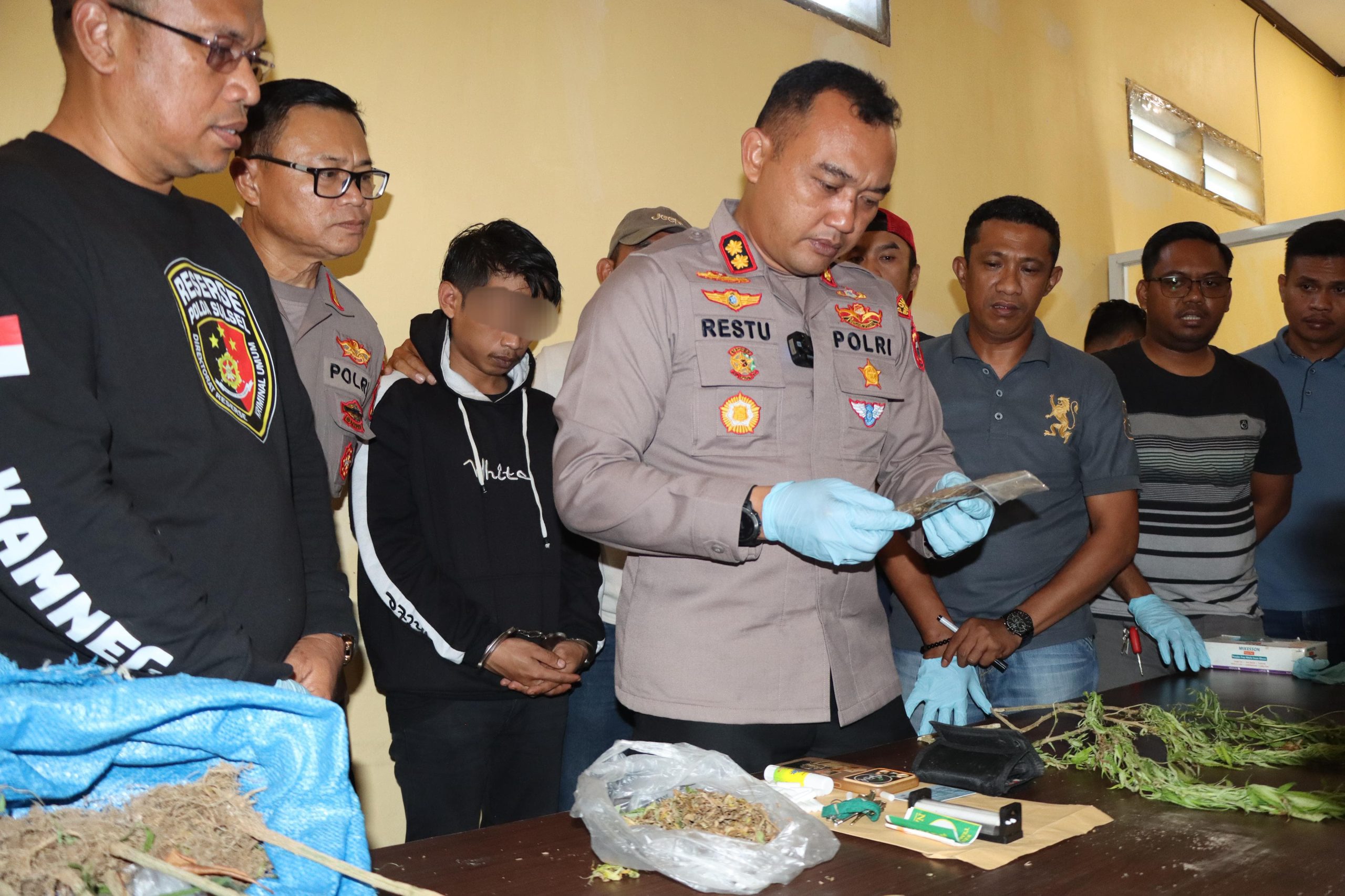 “Awalnya kami menerima informasi dari masyarakat terkait sebuah akun Instagram yang dicurigai menjual ganja. Tim Satresnarkoba kemudian melakukan penyelidikan dengan menyamar sebagai pembeli, hingga akhirnya berhasil melakukan penangkapan,” jelas Kapolres dalam konferensi pers didampingi Kasat Narkoba AKP Akhmad Risal, Selasa (2/9/2025).