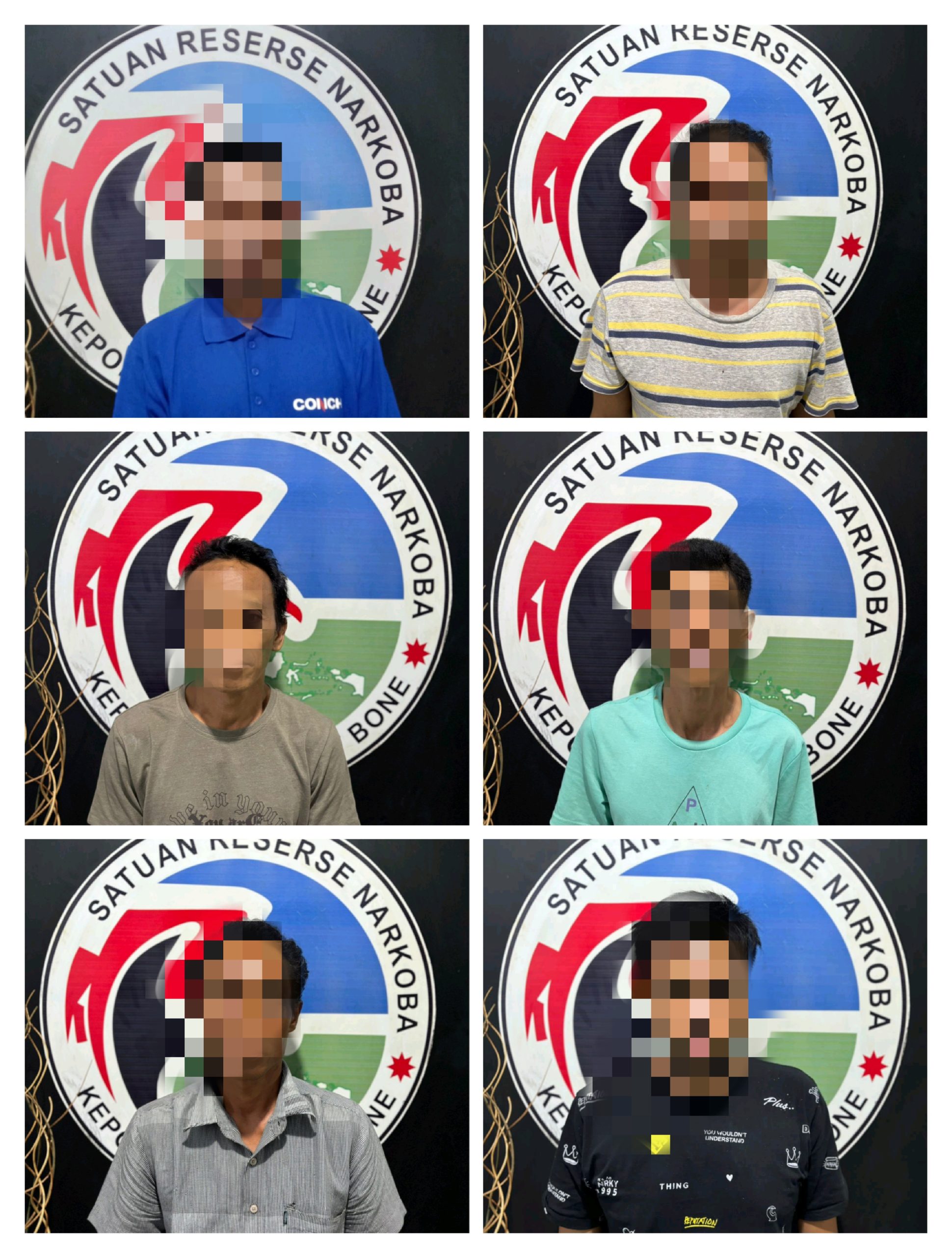 Kapolres Bone AKBP Erwin Syah, S.I.K.M.H melalui Kasat Narkoba IPTU Aswar, SH.,MH mengatakan bahwa, pada penangkapan ini, ada 6 orang pelaku yang diamankan dan 2 diantaranya resedivis kasus yang sama.