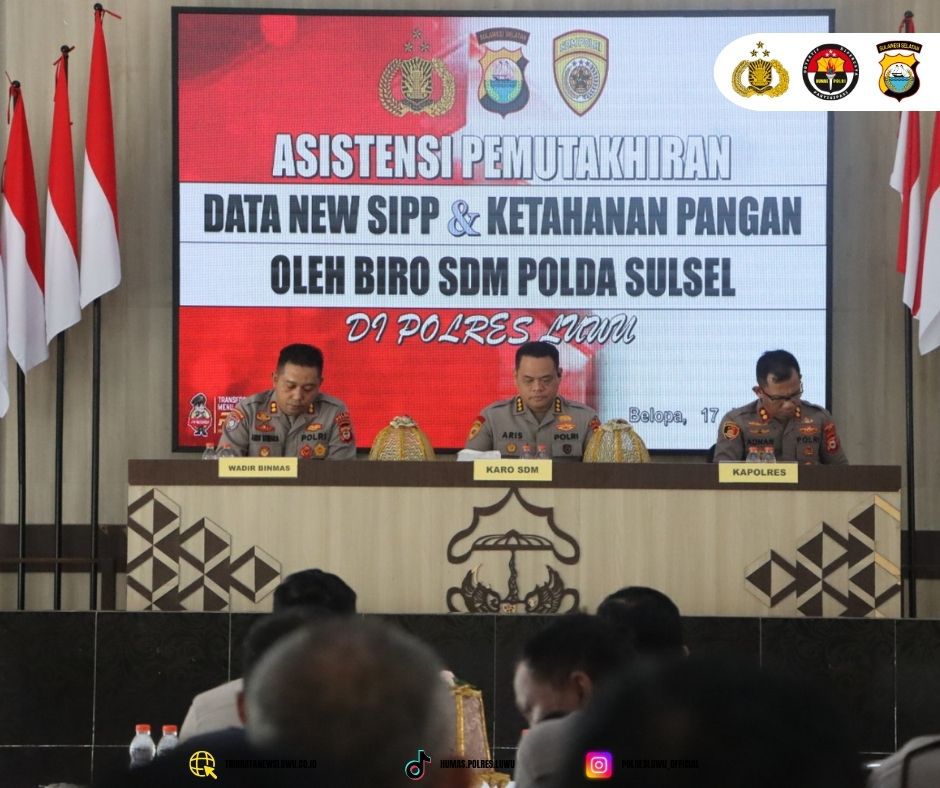 Luwu – Dalam rangka mendukung Program Ketahanan Pangan Nasional, Polres Luwu menerima kunjungan asistensi dari Biro SDM Polda Sulsel yang dipimpin oleh Karo SDM Kombes Pol Aris Haryanto, S.I.K., M.Hum., serta turut didampingi oleh Wadir Binmas AKBP Andi Kumara, S.H., S.I.K., M.Si., bertempat di Aula Tebbakke Tongngenge, Kamis (17/7/2025).