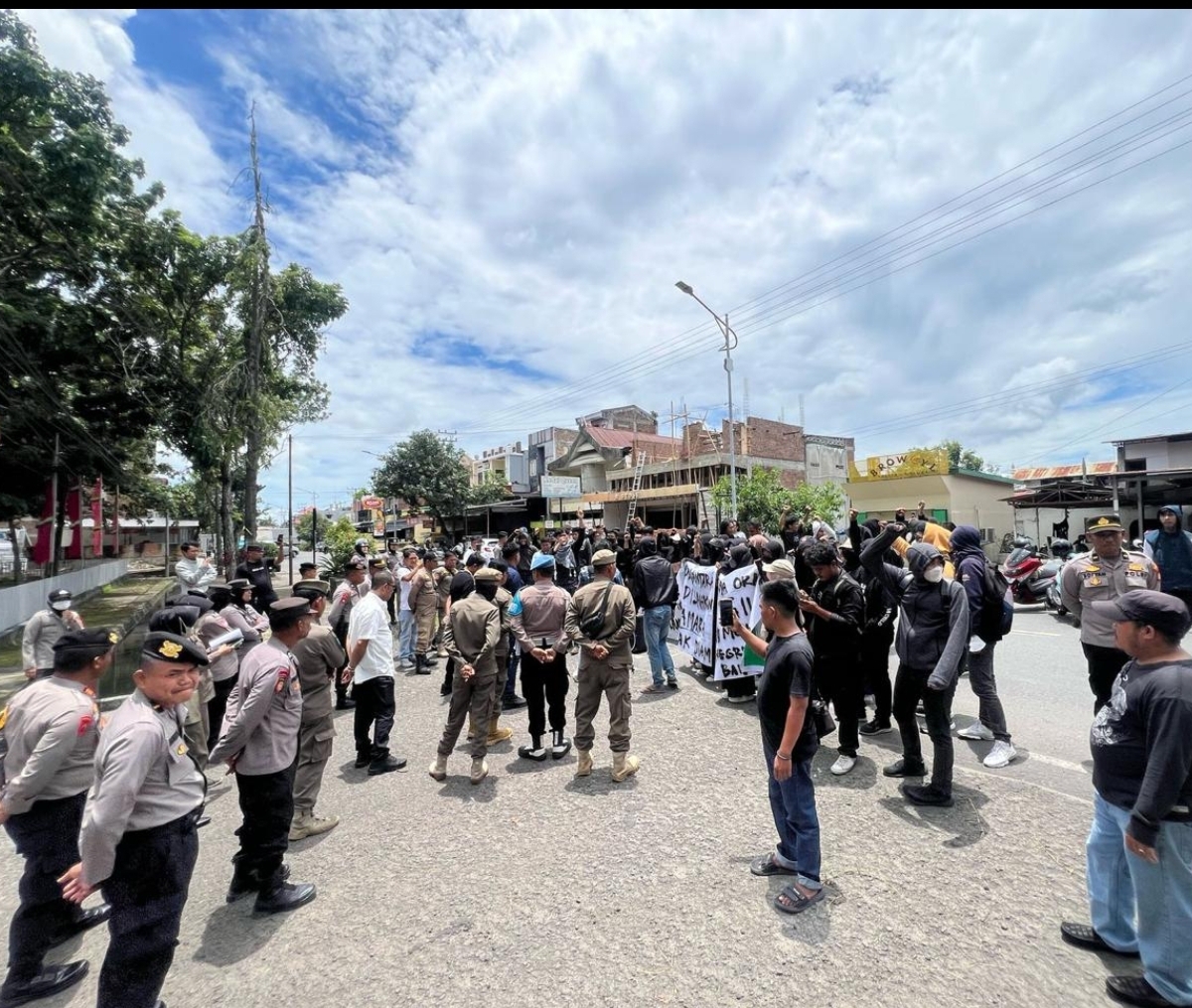 Mahasiswa yang berunjukrasa mengawali aksinya di depan Mapolres Sidrap dan melanjutkan ke DPRD Kabupaten Sidrap.