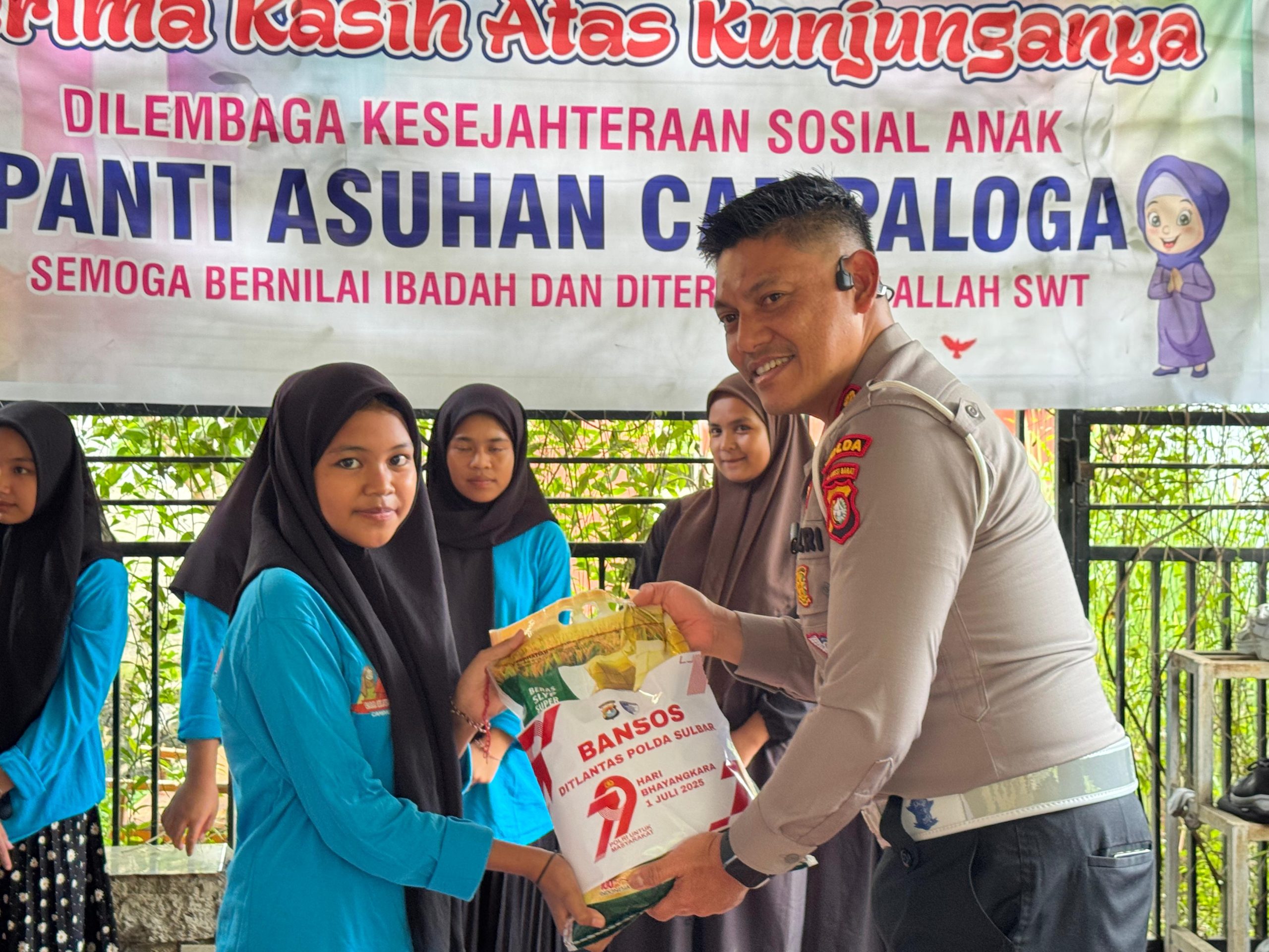 Polda Sulbar – Dalam rangka memperingati Hari Bhayangkara ke-79, Direktorat Lalu Lintas Polda Sulawesi Barat menggelar kegiatan sosial yang sarat makna. Dipimpin langsung oleh Dirlantas Polda Sulbar, Kombes Pol Wahid Kurniawan, timnya mengunjungi Panti Asuhan Campaloga di Jalan Tammasapi, Kelurahan Binanga, Mamuju, dan masyarakat kurang mampu di Jalan Urip Sumoharjo Karema, Jumat (20/6/25)