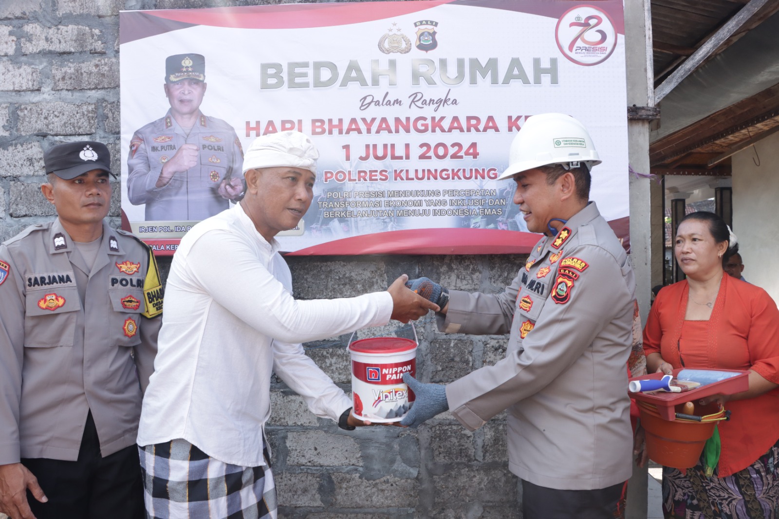 Klungkung BALI- Menyambut hari Bhayangkara ke-78 yang bertemakan “ Polri Presisi Mendukung Percepatan Ekonomi Yang Inklusif dan Berkelanjutan Menuju Indonesia Emas” Polres Klungkung melaksanakan kegiatan Bakti Sosial berupa Bedah Rumah.