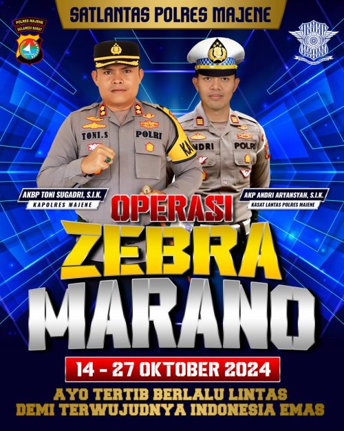 MAJENE – Satlantas Polres Majene akan mengelar operasi Zebra Pallawa selama 14 hari kedepan. Operasi itu akan dilaksanakan mulai tanggal 14-27 Oktober 2024.