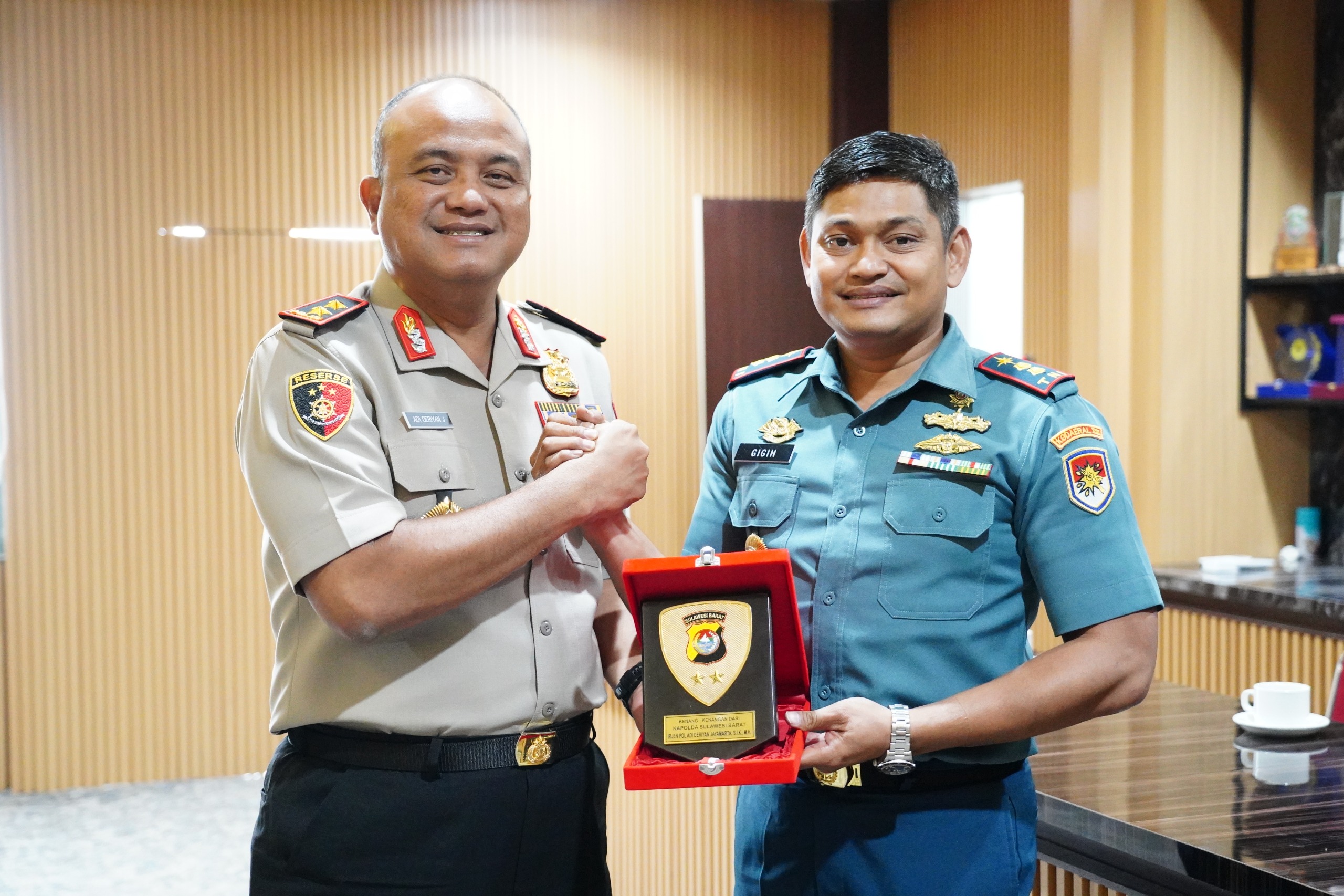 Polda Sulbar – Kepala Kepolisian Daerah Sulawesi Barat Irjen Pol Adi Deriyan Jayamarta menyambut kedatangan Danlanal Mamuju dalam pertemuan silaturahmi yang berlangsung di ruang kerja Kapolda, Selasa (13/1/26).