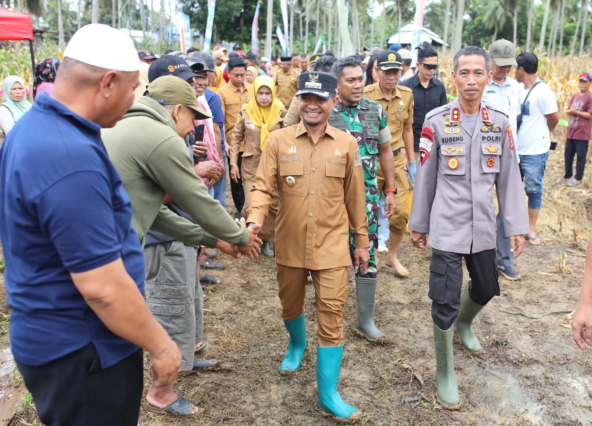 Bone,– Kapolres Bone AKBP Sugeng Setio Budhi, S.IK., M.Tr.Opsla bersama Bupati Bone H. Andi Asman Sulaiman, S.Sos., M.M., menghadiri kegiatan panen perdana jagung hibrida di lokasi Demplot Kelompok Tani (Poktan) Tumbae II, Kelurahan Tokaseng, Kecamatan Tellu Siattinge, Selasa (26/08/2025).
