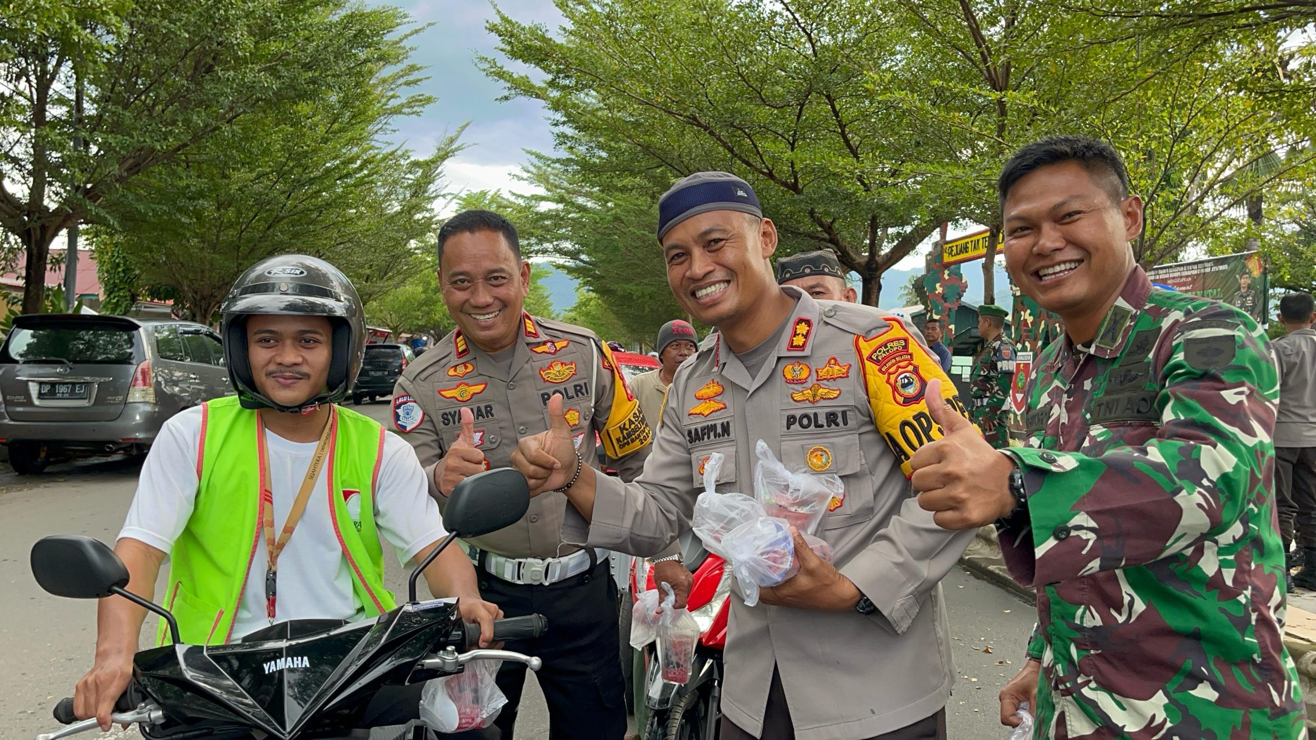 Suasana berlangsung khidmat dan penuh kebersamaan. Para personel dengan antusias membagikan takjil kepada masyarakat yang melintas di sekitar lokasi sebelum akhirnya bersama-sama melaksanakan buka puasa.