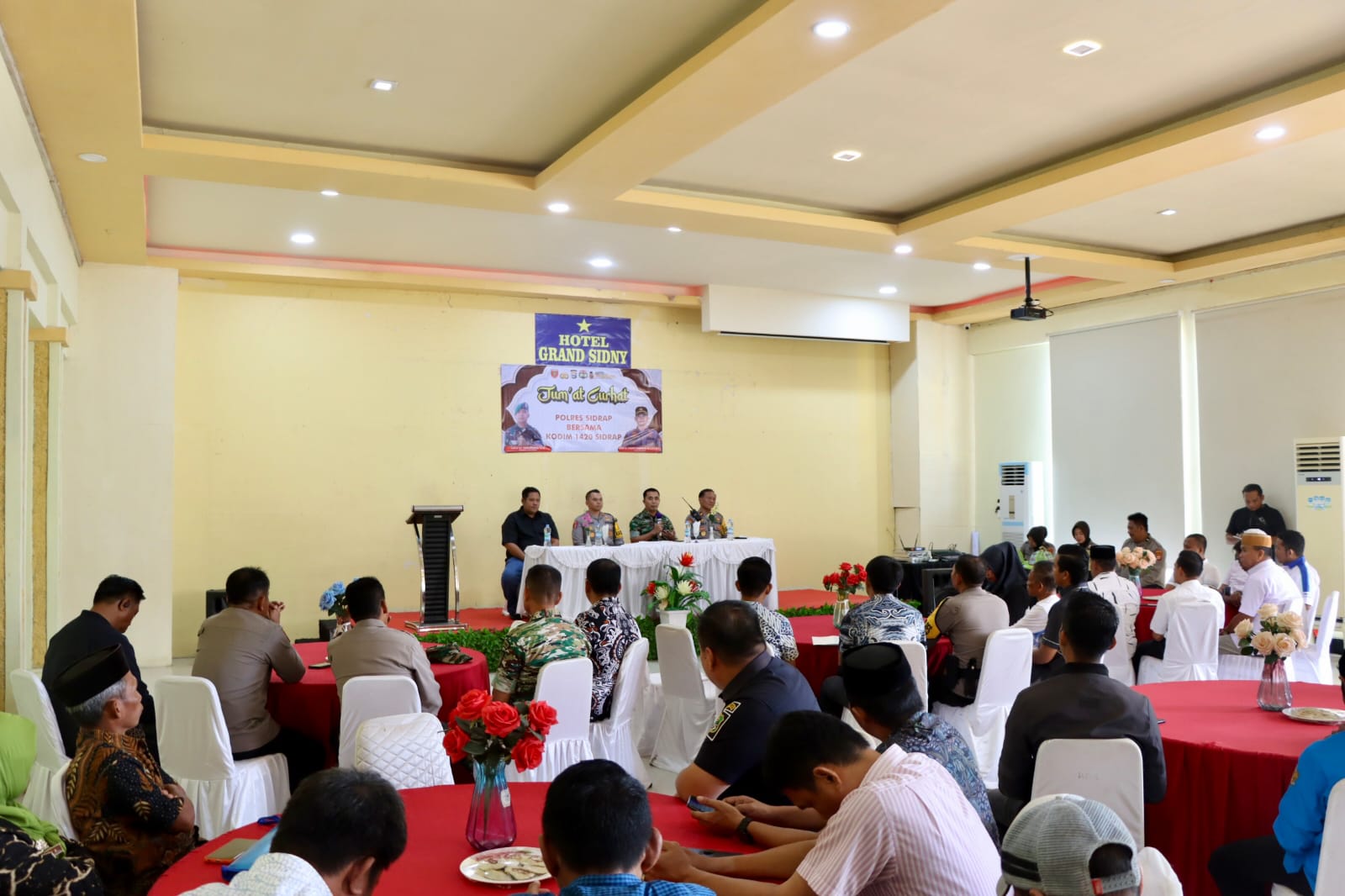 SIDRAP, 26 Juli 2024 – Kapolres Sidrap, AKBP Fantry Taherong. SH.,S.I.K.,MH bersama Dandim 1420 Sidrap, LETKOL Infanteri Awaloedin. S.I.P memimpin acara Jumat Curhat yang digelar di ballroom Hotel Grand Zidny pada hari Jumat, 26 Juli 2024. Acara ini dihadiri oleh berbagai elemen masyarakat, termasuk tokoh agama, tokoh masyarakat, media, komunitas motor dan perwakilan organisasi kemasyarakatan.