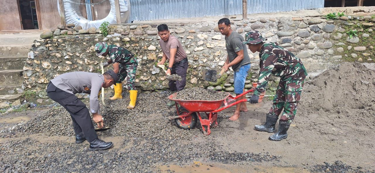 Tana Toraja – Terlihat kompak Polri Polres Tana Toraja, TNI, Mahasiswa KKN dan masyarakat bergotong royong melaksanakan kerja bakti baik dalam bentuk pembersihan lingkungan, pengecoran jalan, pembersihan material longsor serta Polri dan masyarakat turut membantu dalam program TNI Manunggal Membantu Desa (TMMD), Sabtu(26/07/24).