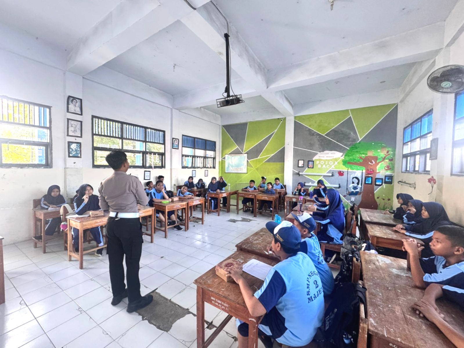 Polres Majene – Dalam upaya menanamkan pemahaman sejak dini tentang pentingnya tertib berlalu lintas kepada generasi muda, Unit Kamseltibcarlantas Polres Majene menggelar sosialisasi Undang-Undang No. 22 Tahun 2009 tentang Lalu Lintas dan Angkutan Jalan (LLAJ). Sosialisasi ini berlangsung di SMP Negeri 2 Majene, Kamis (24/7/2025).