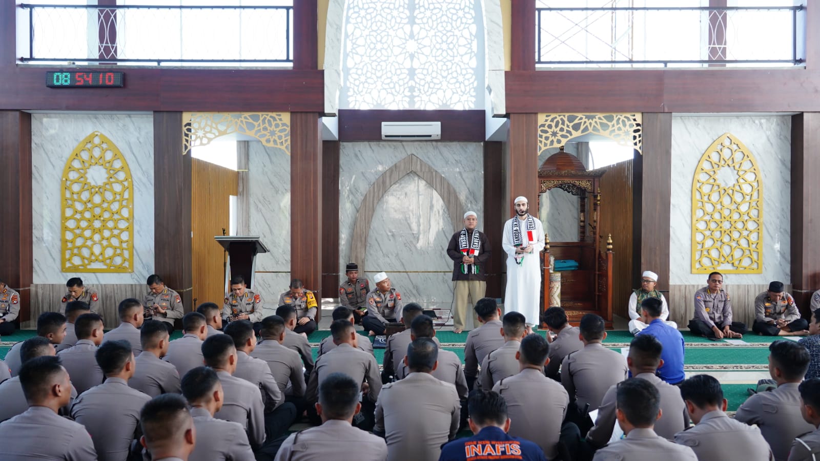 Polda Sulbar – Ada yang istimewa pada pelaksanaan rutin bimbingan rohani dan mental (Binrohtal) Polda Sulbar kali ini dimana Syekh Malik Jamal Al Jammal dari Palestina turut hadir sekaligus berbagi kisah pilu tentang keadaan Palestina khususnya di wilayah Gaza saat ini, Selasa (26/3/24) di Masjid Jabal Rahmah Mapolda.