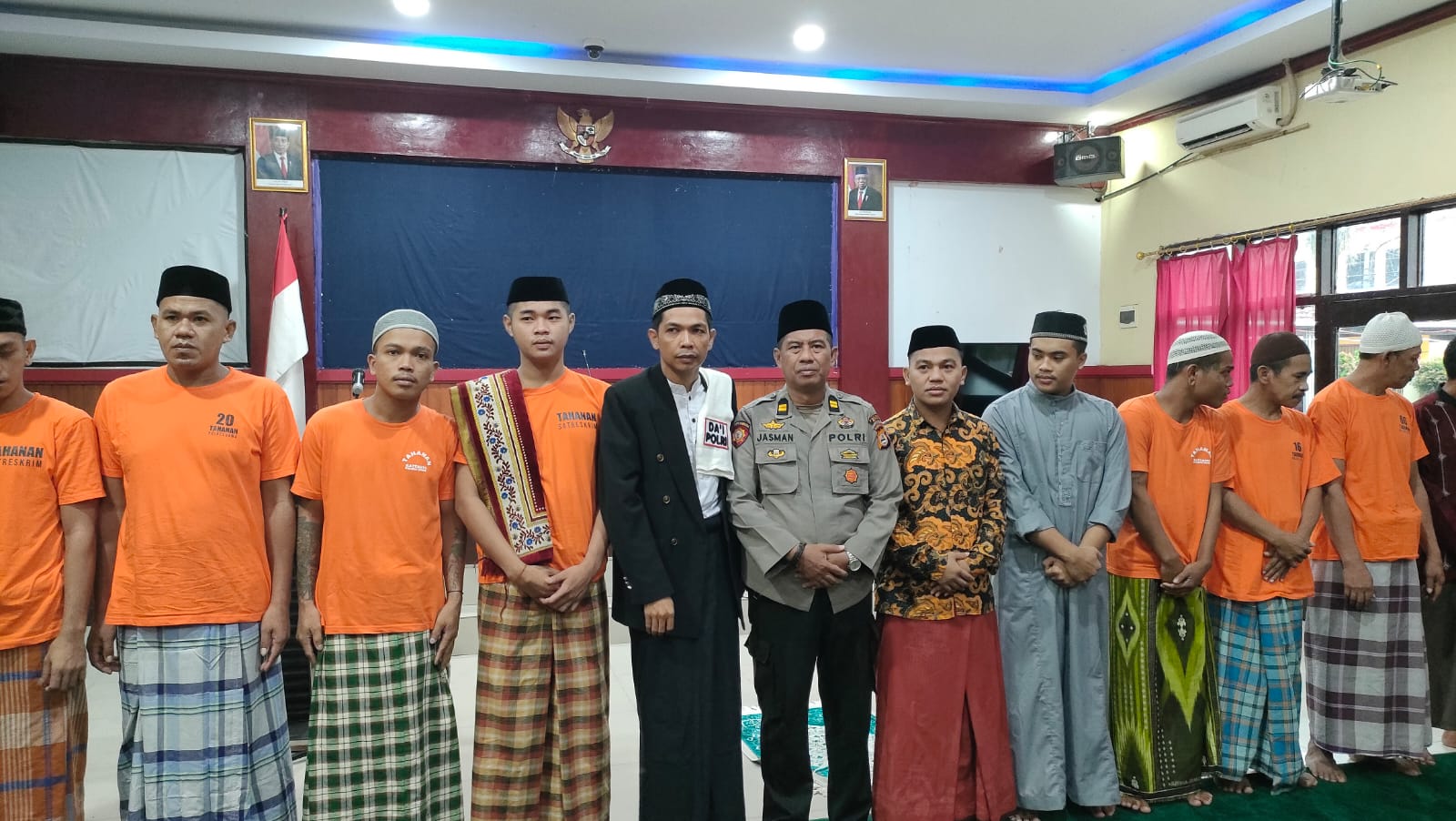 Para tahanan melaksanakan shalat Idul Fitri dua rakaat dipimpin oleh salah satu tahanan, AJWAN, S.Hum, M.Pd, yang merupakan imam dalam kasus pelecehan. Khutbah Idul Fitri disampaikan oleh Ustads BRIPKA Muhammad Arafah, dengan tema “Jadikan Momentum Idul Fitri untuk Merubah Diri ke Arah yang Lebih Baik”.