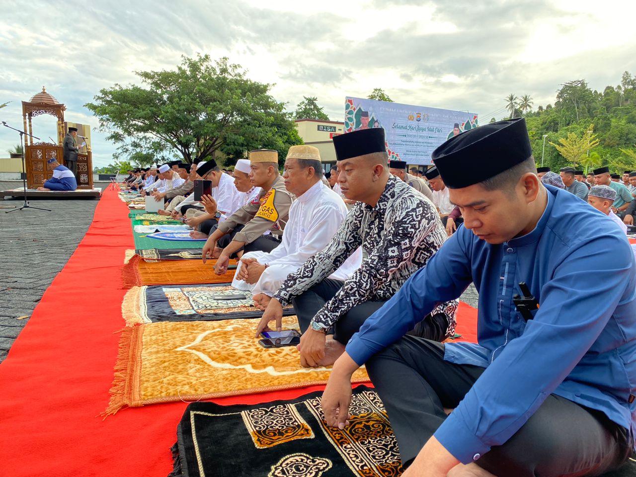 Polda Sulbar – Lantunan takbir hari kemenangan Idul fitri 1445 hijriah setelah sebulan penuh berpuasa juga bergemuru di Polda Sulbar sebagai tanda pengagungan dan rasa syukur kepada Allah, Tuhan semesta alam atas kesempurnaannya, Rabu (10/4/24) di lapangan Tribrata Mapolda.