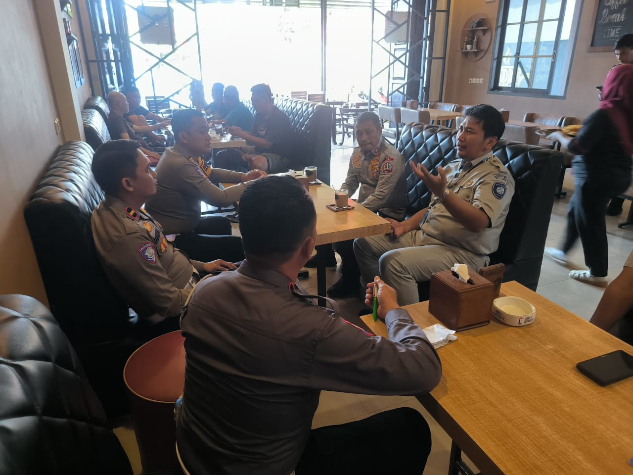 Kasat Lantas Polres Bone AKP Asep Wahyudi bersama anggota melaksanakan pertemuan dengan Jasa Raharja Perwakilan Watampone dan Dinas Perhubungan Kabupaten Bone.
