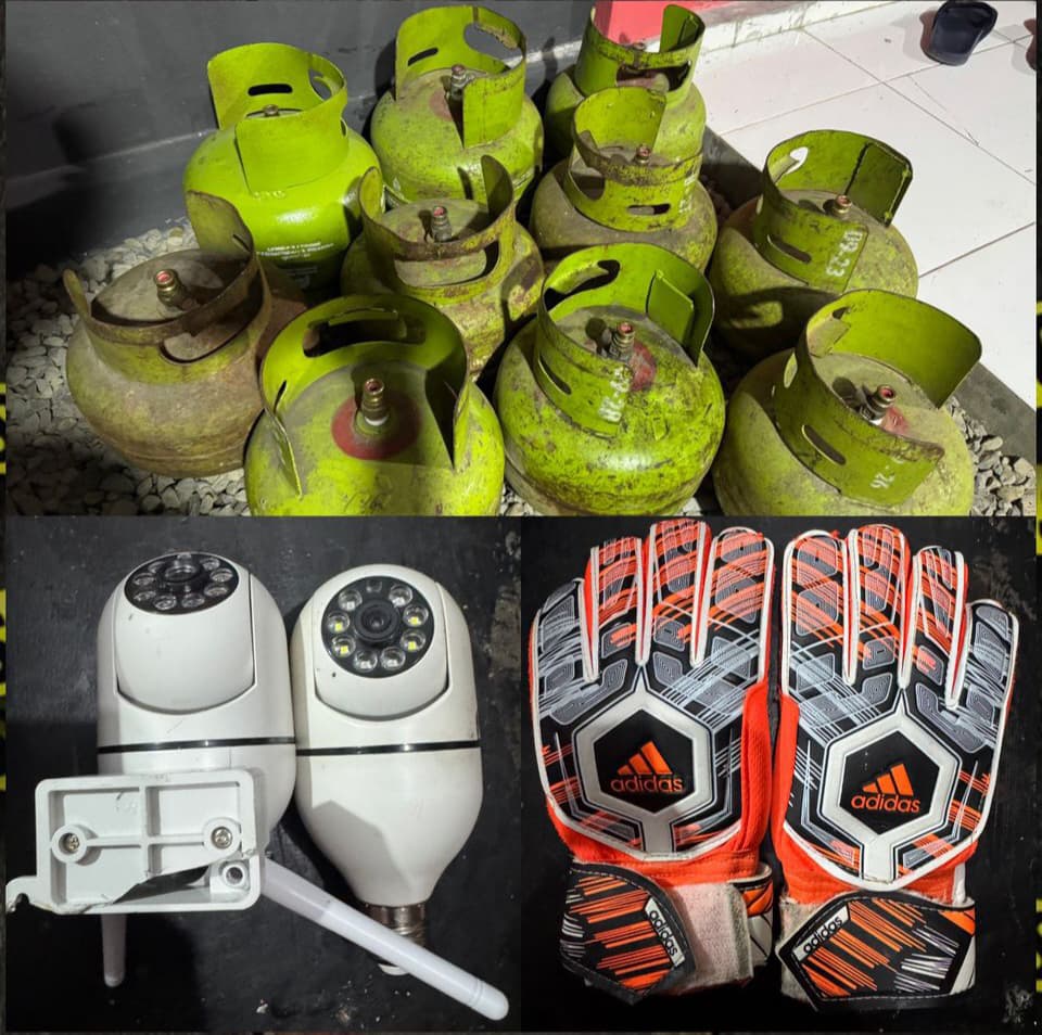 Dalam penangkapan ini, polisi turut mengamankan barang bukti berupa 10 tabung gas LPG 3 kg, 2 unit kamera CCTV, dan satu pasang sarung tangan bola (kiper).