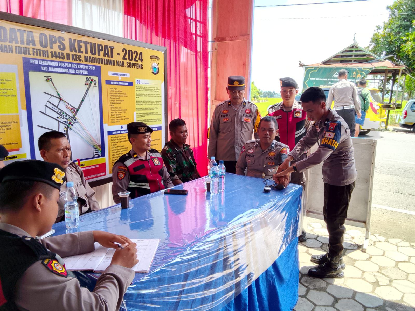 Kapolres Soppeng AKBP Dr.H.Muh Yusuf Usman SH.,S.IK.,MT.,CIPA.melalui Kasi Humas Polres Soppeng IPTU H.Husain S.Sos SH.MH mengatakan pemeriksaan kesehatan dilakukan pada setiap anggota yang terlibat Operasi Ketupat 2024 di setiap pos pam yan.