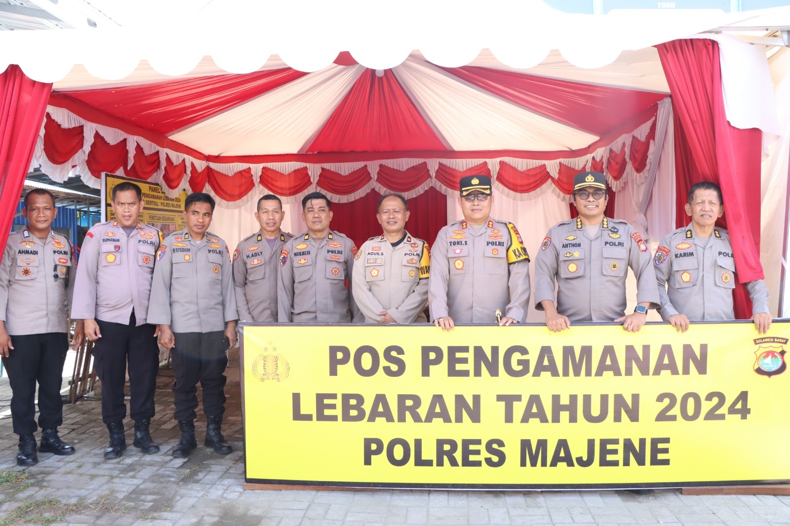 MAJENE – Tim Was Ops Polda Sulawesi Barat yang dipimpin oleh Auditor Madya Tk. III Irwasda Polda Sulbar, Kombes Pol. Anton Haryadi, S.I.K., M.H, didampingi Kapolres Majene AKBP Toni Sugadri dan Wakapolres Majene Kompol Agussalim Arsyad, melaksanakan pengecekan kesiapan Pos Pengamanan Ops Ketupat Marano 2024 di wilayah Polres Majene. Minggu (7/4/24)
