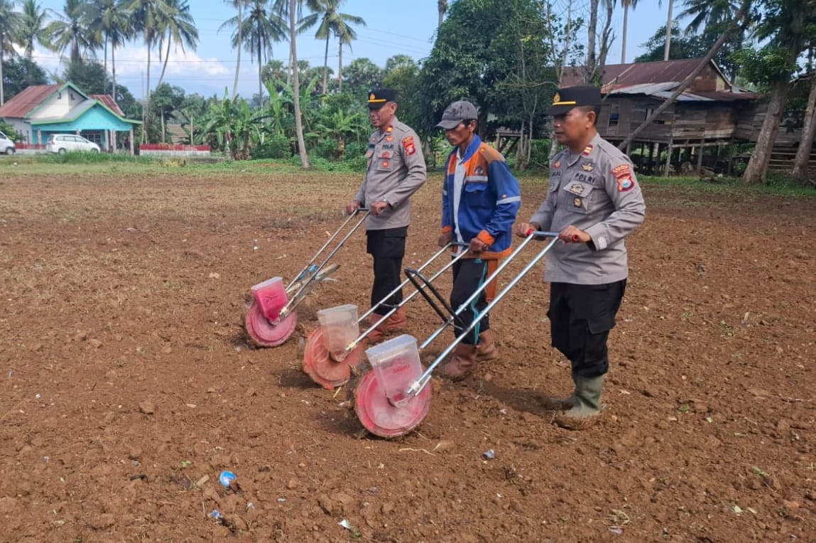 Aksi penanaman jagung dipimpin langsung Kabag SDM Polres Bone AKBP H. Rizal IPTU Andi Jalaluddin, S.Sos Kapolsek Libureng, Kapolsw Lapri IPTU Muh Amir Mahmud