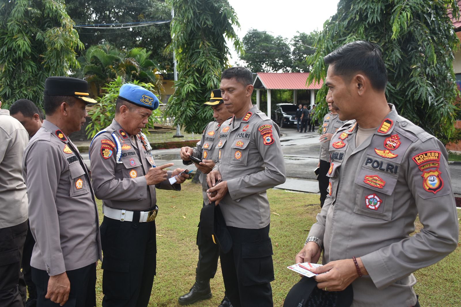 Pemeriksaan dilakukan secara komprehensif, mencakup kelengkapan administrasi pribadi (KTP, KTA, SIM, STNK, dan surat izin senjata api), sikap tampang, kerapian seragam, hingga pengecekan perangkat komunikasi pribadi seperti telepon genggam.