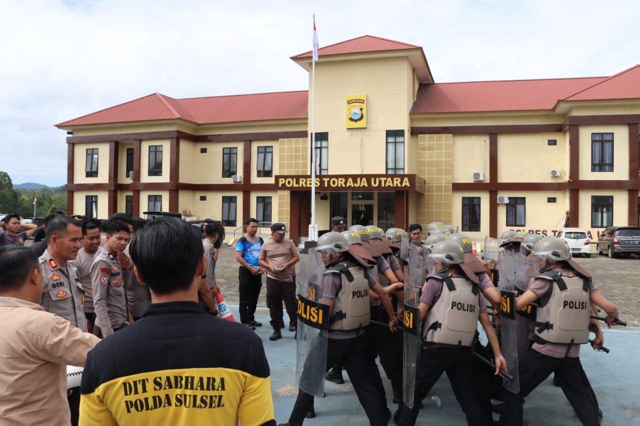 Kegiatan latihan kemampuan dalmas tersebut dilaksanakan di Halaman Apel Mapolres Toraja Utara dipimpin langsung Wakapolres Toraja Utara Kompol Marthen Tangallo didampingi Kabag Ops AKP Gerianto Pabuang, SH.