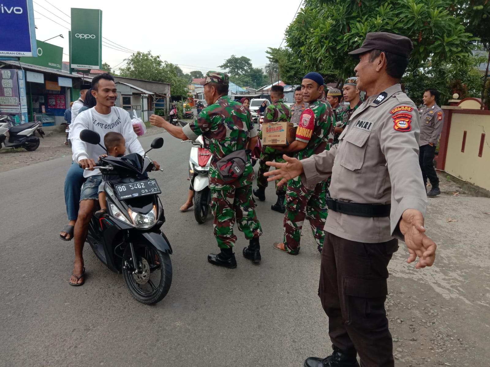 Bangkala, Jeneponto – Meraih keberkahan di bulan Suci Ramadhan, Polsek Bangkala Polres Jeneponto bersama Koramil Bangkala bagi- bagi takjil gratis kepada pengguna jalan, yang dilaksanakan di depan Mako Polsek Bangkala jalan raya allu, Kelurahan Pallengu, Kecamatan Bangkala, Kabupaten Jeneponto. Jum’at sore (15/3/2024).