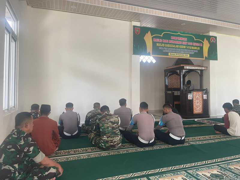Polda Sulbar – Sinergitas antara Tentara Nasional Indonesia (TNI) dan Kepolisian Republik Indonesia (Polri) di wilayah Mamuju kembali diperlihatkan dengan indah dalam kebersamaan Sholat Jumat di Masjid Babussalam, Kodim 1418 Mamuju.