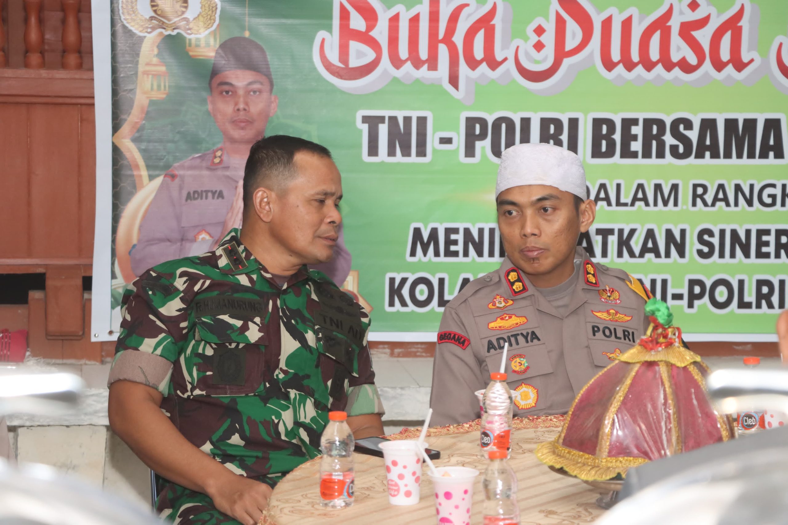 Dalam acara ini, TNI-Polri juga berbagi kebahagiaan dengan anak yatim, dengan menyajikan hidangan buka puasa.