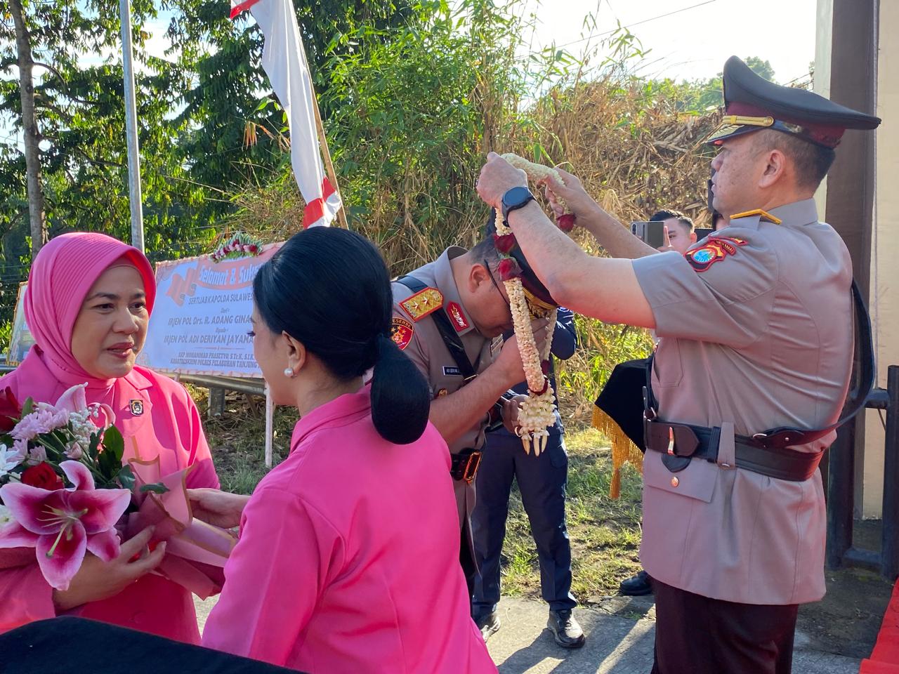 Setibanya di Mapolda Sulbar, Irjen Pol Adi Deriyan Jayamarta didampingi Ketua Bhayangkari disambut dengan pengalungan bunga oleh Purnawirawan Irjen Pol Adang Ginanjar beserta istri, diikuti jajaran pejabat utama dan Bhayangkari lainnya. Karangan bunga ucapan selamat juga berderet di sepanjang pintu masuk Mapolda yang menambah semarak suasana.