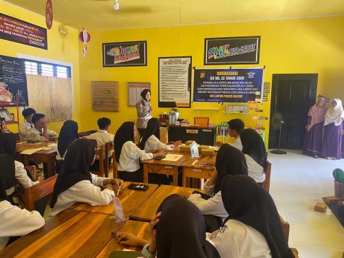 Majene – Unit Kamseltibcar Lantas Polres Majene Kembali menggelar sosialisasi dan penyuluhan mengenai Undang-Undang Nomor 22 Tahun 2009 tentang Lalu Lintas dan Angkutan Jalan (LLAJ) di SMK Mega Link Majene pada Senin (21/10/24).