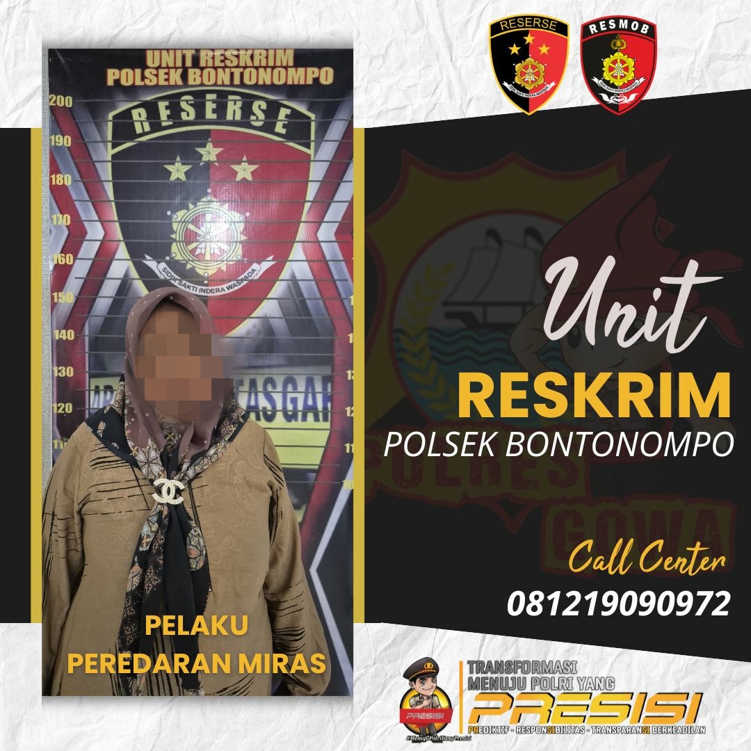 Unit Reskrim Polsek Bontonompo, Polres Gowa, berhasil mengungkap dan menangkap pelaku tindak pidana peredaran serta pendistribusian minuman keras (miras) botolan dalam Operasi Kepolisian Kewilayahan dengan sandi Pekat Lipu 2025, Selasa (6/5/2025).