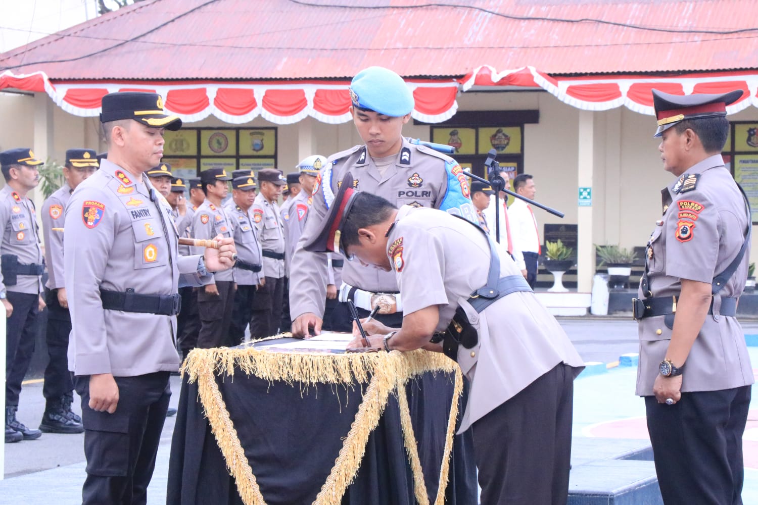 Dalam upacara tersebut, jabatan Kasat Samapta resmi diserahkan dari AKP Agung Sapto Hidayat kepada penggantinya, AKP Aiyub. S. Pd. Serah terima jabatan ini merupakan bagian dari rotasi rutin yang dilakukan oleh Kepolisian guna penyegaran organisasi dan peningkatan kinerja.